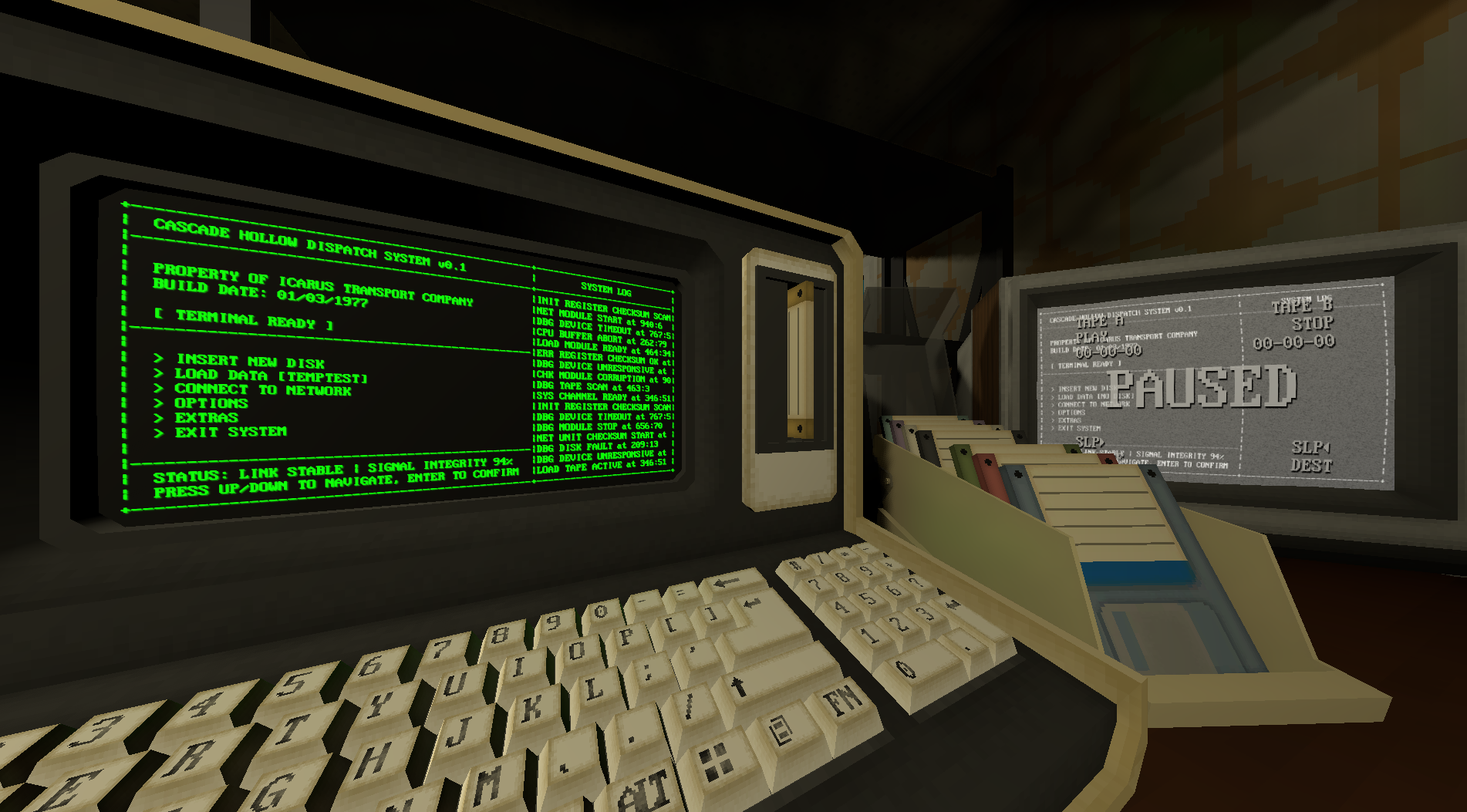 Been working on the main menu, and going over the general designs I want for the menus. I really loved the idea of a diegetic/interactive save menu for the game, as such, TADA, interactive game menu. You'll choose save slot by selecting and inserting the floppy disk into the game.
